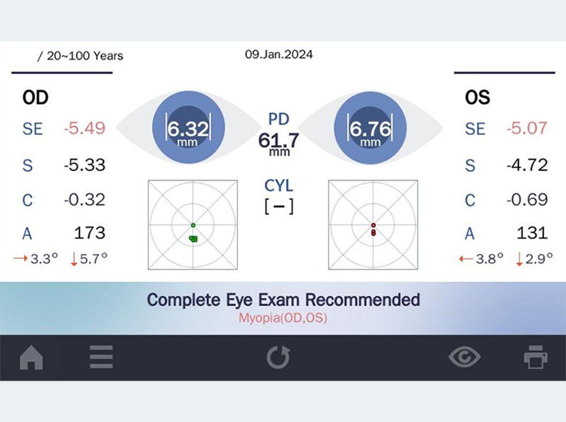 Our device can quickly and accurately measure individuals from infants over six months of age, who do not like to sit in front of a desktop autorefractometer, or to adults with limited mobility. It assesses refractive errors within a second from a distance of 1 meter, making it useful for detecting risks of amblyopia, such as myopia, hyperopia, astigmatism, and strabismus.